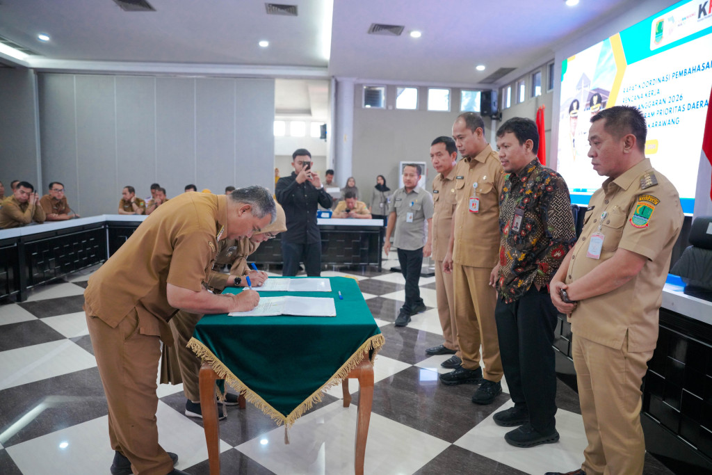 Karawang — Pemerintah Kabupaten Karawang menggelar rapat koordinasi pembahasan Rencana Kerja Pemerintah Daerah (RKPD) Tahun Anggaran 2026 sebagai langkah strategis dalam menentukan arah pembangunan daerah. Kegiatan tersebut dilaksanakan di Aula Gedung Singaperbangsa Karawang pada Maret 2026.